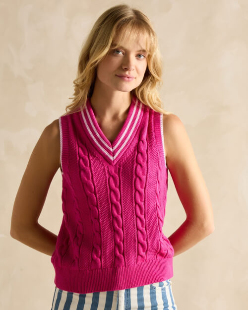 Top it off with a cap and for your feet, canvas pumps and socks will provide style and comfort. Knits are also a good option, and our cricket-inspired v-neck jumpers or knitted vests look great paired with white skinny jeans.