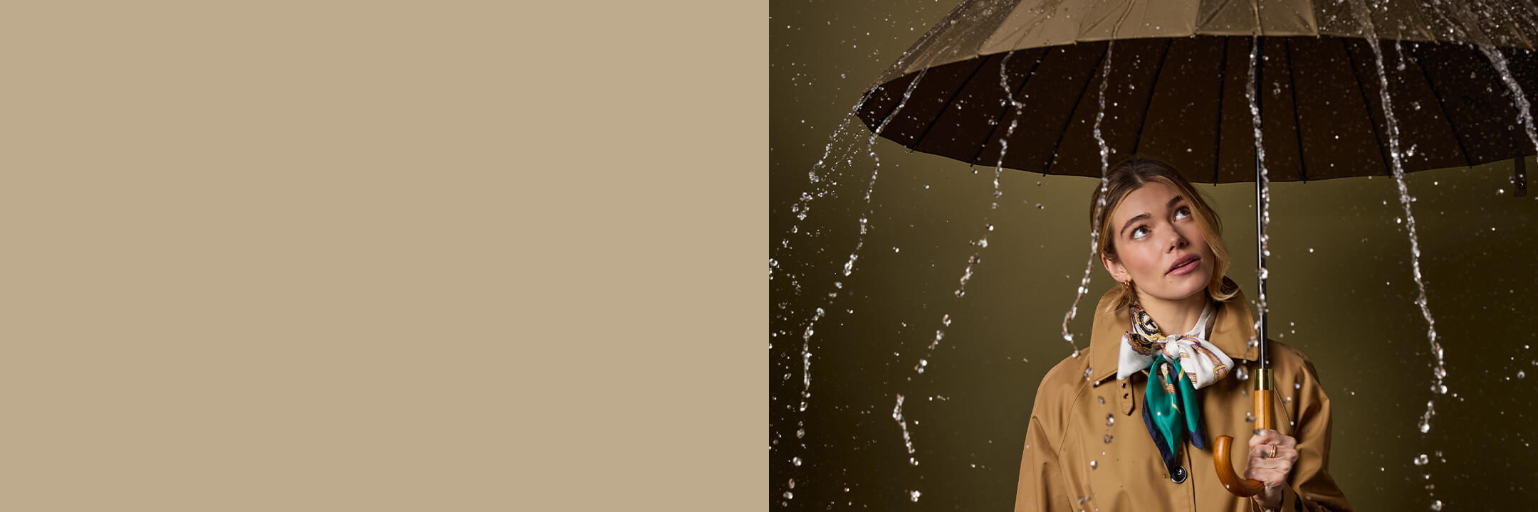If the forecast is heavy rain with gail-force winds, then a few simple additions to your outfit will ensure you are dry and warm. Many of our raincoats have enough room to build layers beneath, so wearing a bodywarmer or even one of our quilted jackets under your ladies’ raincoat is always an option. It will add extra warmth and allow you to add or take away layers as the weather changes throughout the day. Finish with a silk scarf in a statement colour to brighten up grey days.