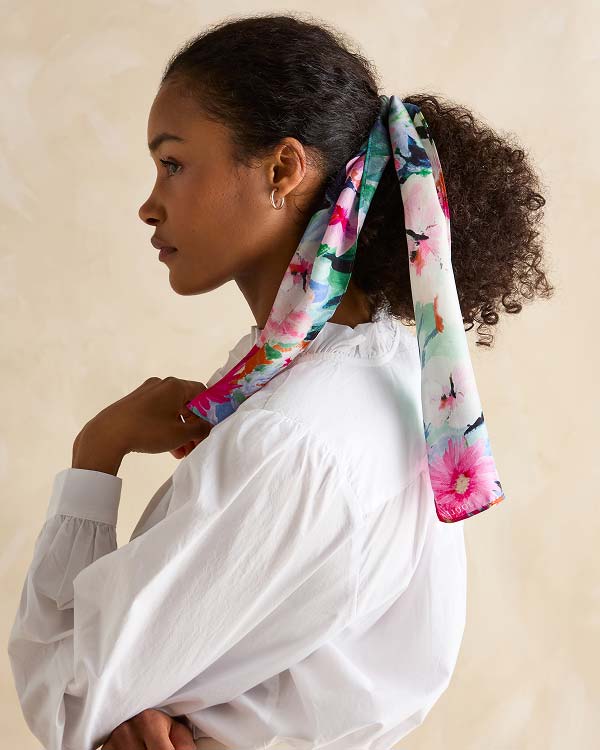 So, how do you wear a silk scarf? It will largely depend on the size and length of the scarf you’re working with. Naturally, a small silk scarf lends itself to be worn in the hair or as a neckerchief, while long silk scarves offer more choice - around the neck, over the shoulders, or even as a top or beach cover-up.