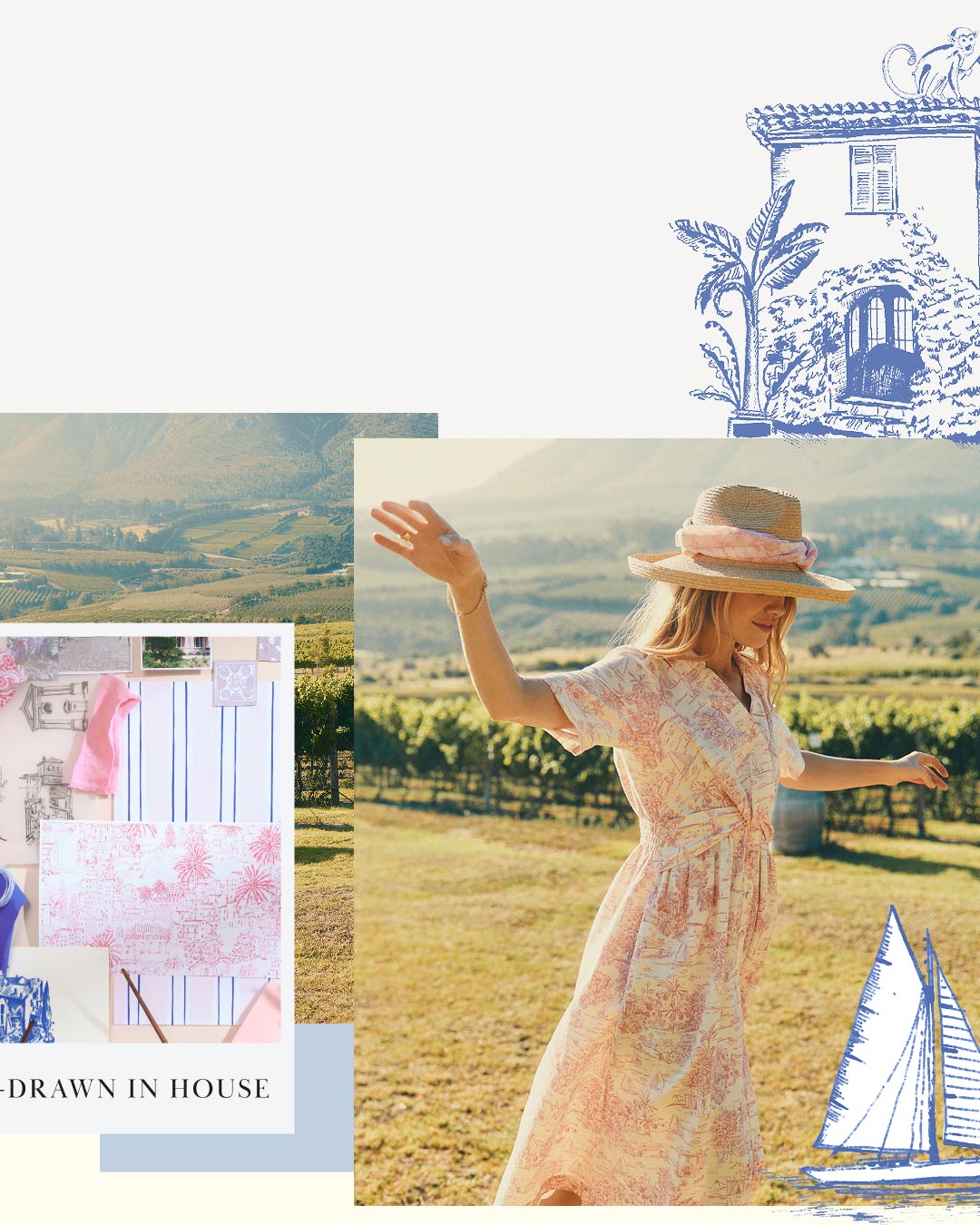 Toile de Jouy prints are story-telling patterns that traditionally capture pastoral scenes. But ours have a tale of their own. With inspiration drawn from the Cote d'Azure, this is our Toile, with a twist.