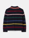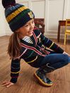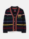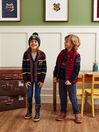 This is a perfectly preppy cardigan with a Harry Potter™ twist any little fan will obsess over. It has a classic cable knit pattern which makes it a wonder for the cooler months, and features four button fastenings each representing a different Hogwarts™ house through coloured thread. The stripes also depict the house colours (with the addition of a pretty pink) and it sports the Hogwarts School Crest™ to the chest. It's completed with metallic detailing to the placket and v-neck, a velour trim to the inside neck and has a ribbed hem and cuffs. Its quality can be seen in every stitch, so when your little witch, wizard or muggle grows too big for it, pass it on to be loved all over again.