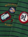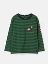 From the flying Ford Anglia and the nifty Nimbus 2000™ broomstick, to the iconic Platform 9 3/4 sign, this top features embroideries that any little Harry Potter™ fan will immediately recognise. It has long sleeves, dropped shoulders, a classic crew neck and features Slytherin™-green and navy stripes. Its quality cotton jersey fabric will ensure when one Harry Potter fan grows too big for it, it can be passed down to another. Completing the style is a glittering Golden Snitch™ hiding on the cuff and a branded tab to the hem.