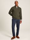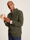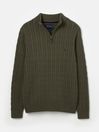 Cut from cotton and featuring a classic, heavyweight cable knit, this jumper is the versatile layer your wardrobe might be missing. Its quarter zip fastening and funnel neck opens up the possibility of building layers beneath it. It's finished with a ribbed hem, neck and cuffs, a faux leather zip pull and a Joules embroidered hare to the chest.