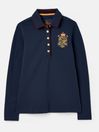 Elevating it beyond a 'basic' polo is the plush velvet undercollar and trim as well as the gold metal buttons. An intricate Joules polo club badge has been embroidered to the chest along with embroidered polo mallets and the player number 3 embroidery to the outer back neck.