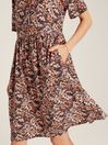 This beautiful transitional dress has a vintage-inspired design and is a staple for season to season styling. It has short sleeves that are perfect for layering with a knit cardigan or oversized jumper during the colder months, or you can wear alone in warmer months to show off its gathered shoulders, square neckline and charming button-down front. The midi-length skirt is gathered at the waist to create subtle volume, and we've added a pocket into the side seams.