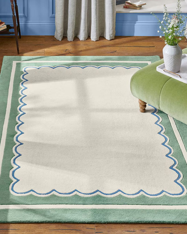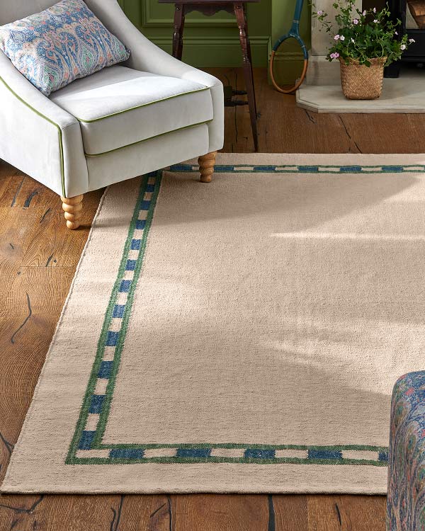 The Chalfield rug is entirely hand-crafted and will elevate any room with its soft green colour palette and design details. It features a scalloped and stripe border that creates a stand-out look and is made from wool.