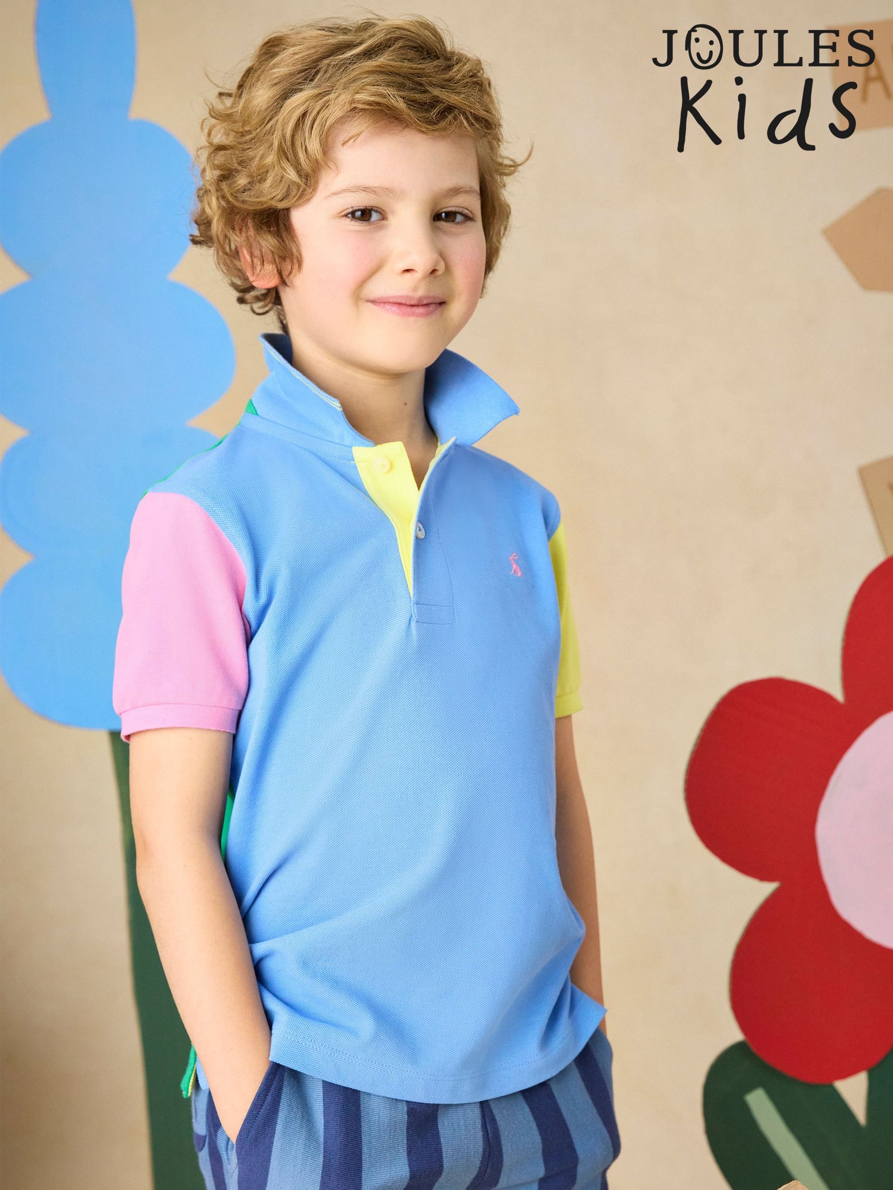 Boys' Woody Blue Colourblock Short Sleeve Cotton Polo Shirt