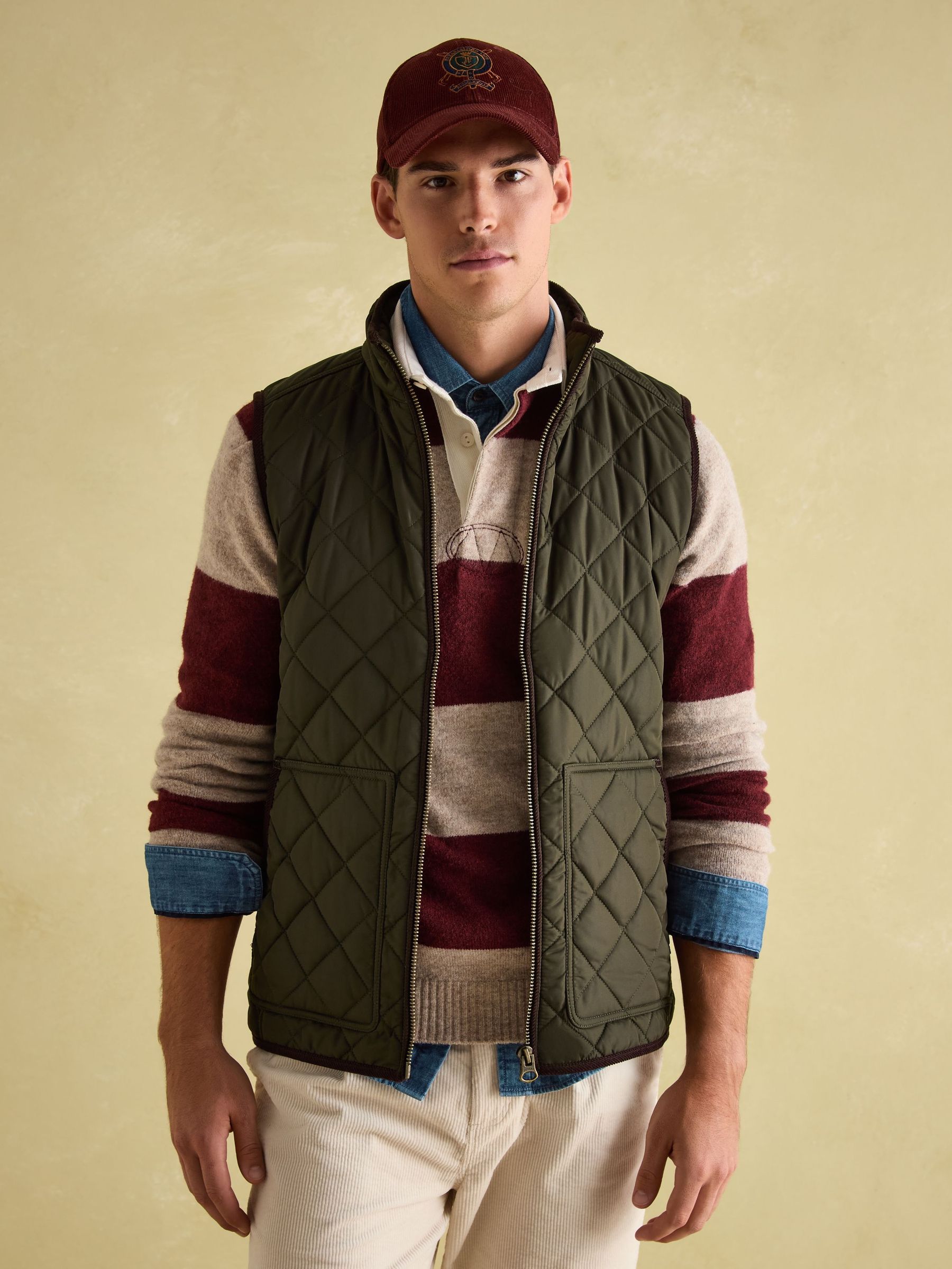 Men’s green gilets exude heritage charm. The countryside-inspired styles in this collection are perfect for pairing with your favourite rugby shirts as an addition to your weekend wardrobe. Or Layer over a mens shirt for that perfect work outfit. Green men’s quilted gilets are filled with warm wadding, with elevated touches like contrasting lining, corduroy trims and back vents for added comfort and practicality. Our heritage green men’s gilets are home in the countryside, perfect for fending off colder days and keeping your style sharp.