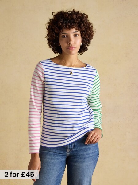 Harbour White Multi Striped Boat Neck Long Sleeve Breton Top