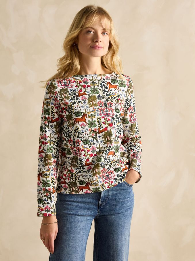 Harbour Cream & Navy Boat Neck Long Sleeve Breton Stripe Top