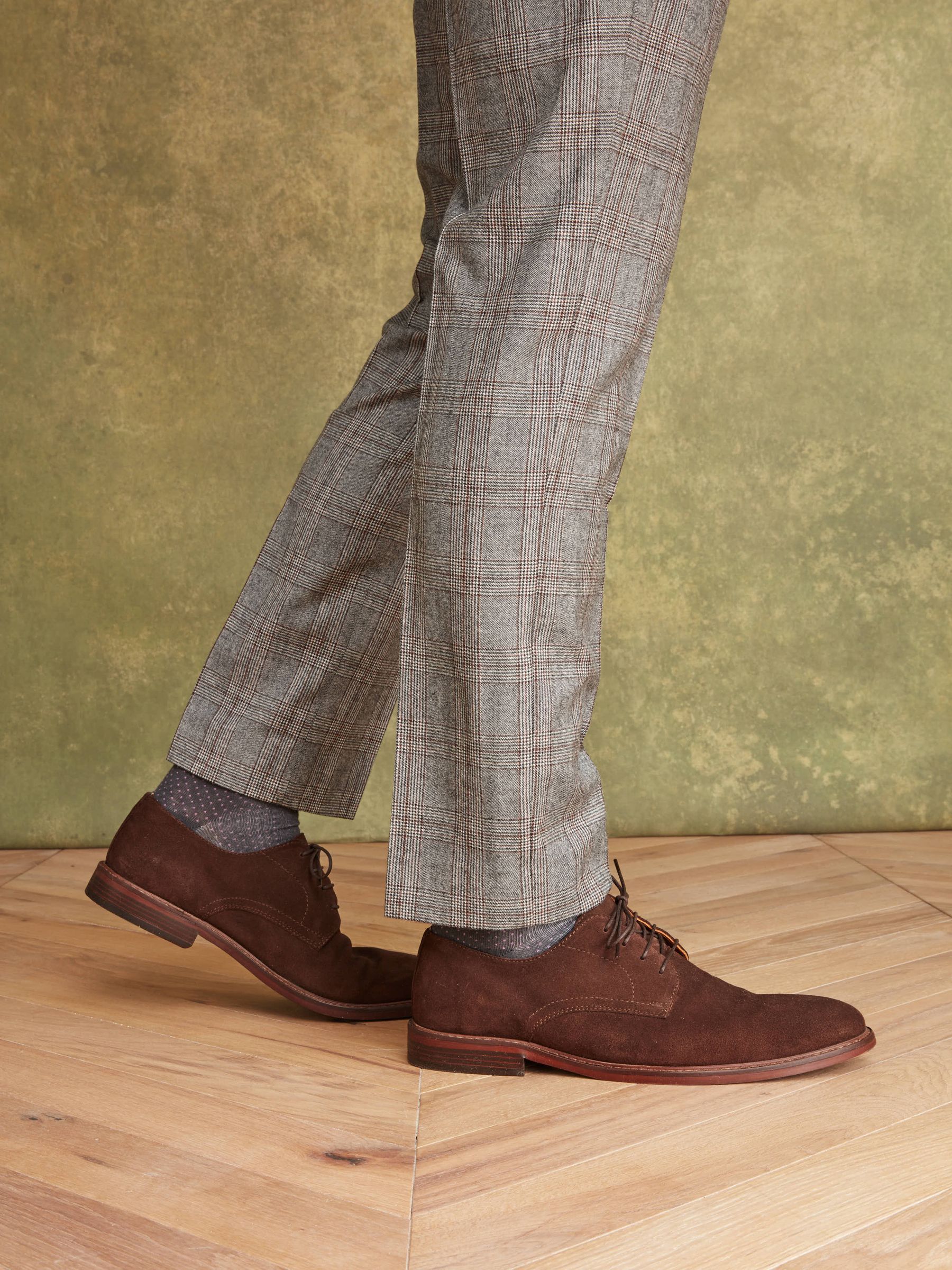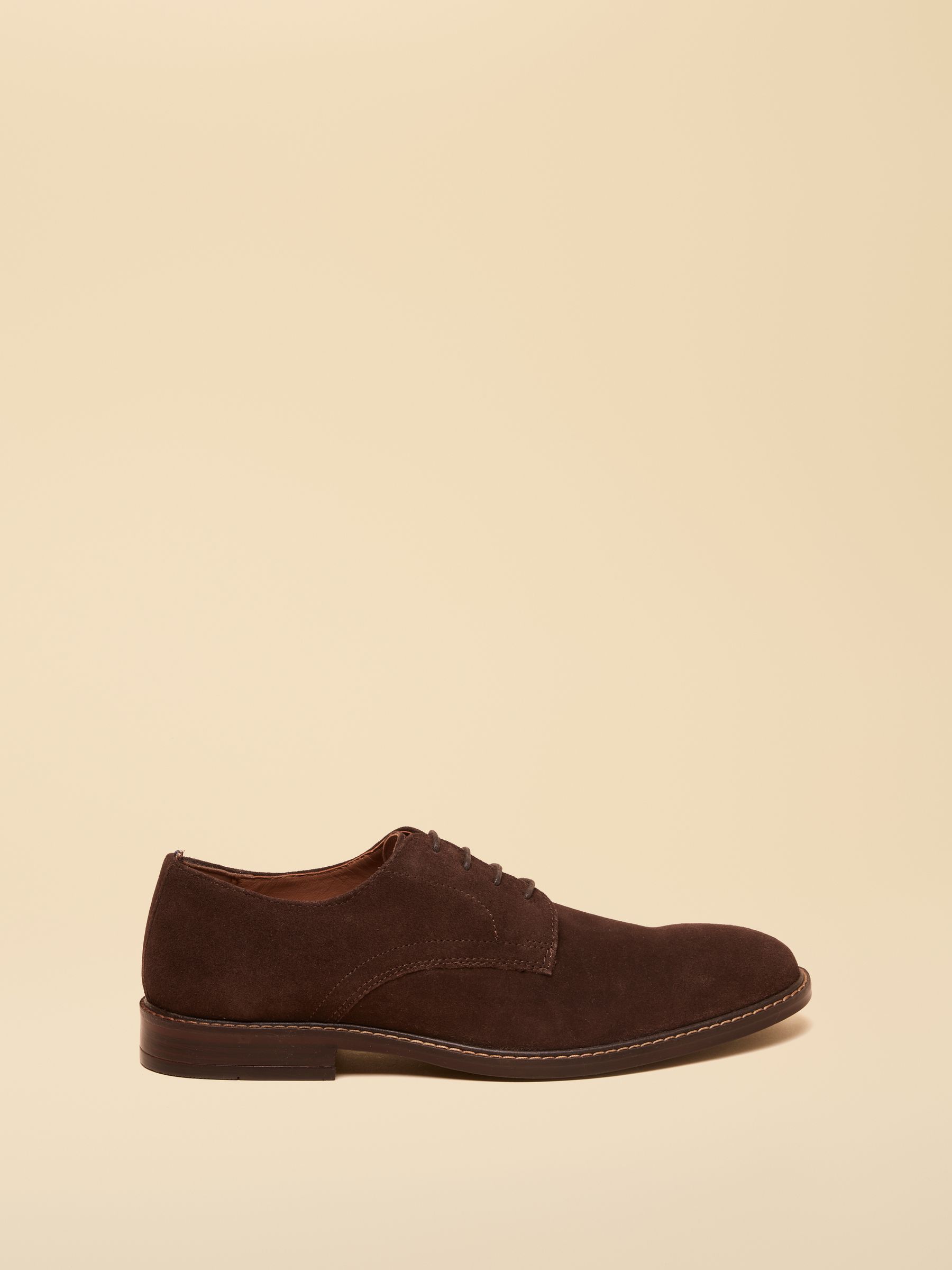 The Derby shoes has been a staple in men's footwear collections since the 17th century. Honouring heritage and tradition, Joules presents this versatile and modernised version of the classic Derby, with a versatile design that can be worn with suit trousers, jeans or chinos. A soft suede adorns the upper, with a fastening showcasing premium DTM laces and a Derby overlay, leading to an almond shape toe. For added comfort, a breathable textile and leather lining resides inside with luxurious cushioning, provided by the Ortholite footbed. A durable sole unit sits underneath with a grippy outsole.