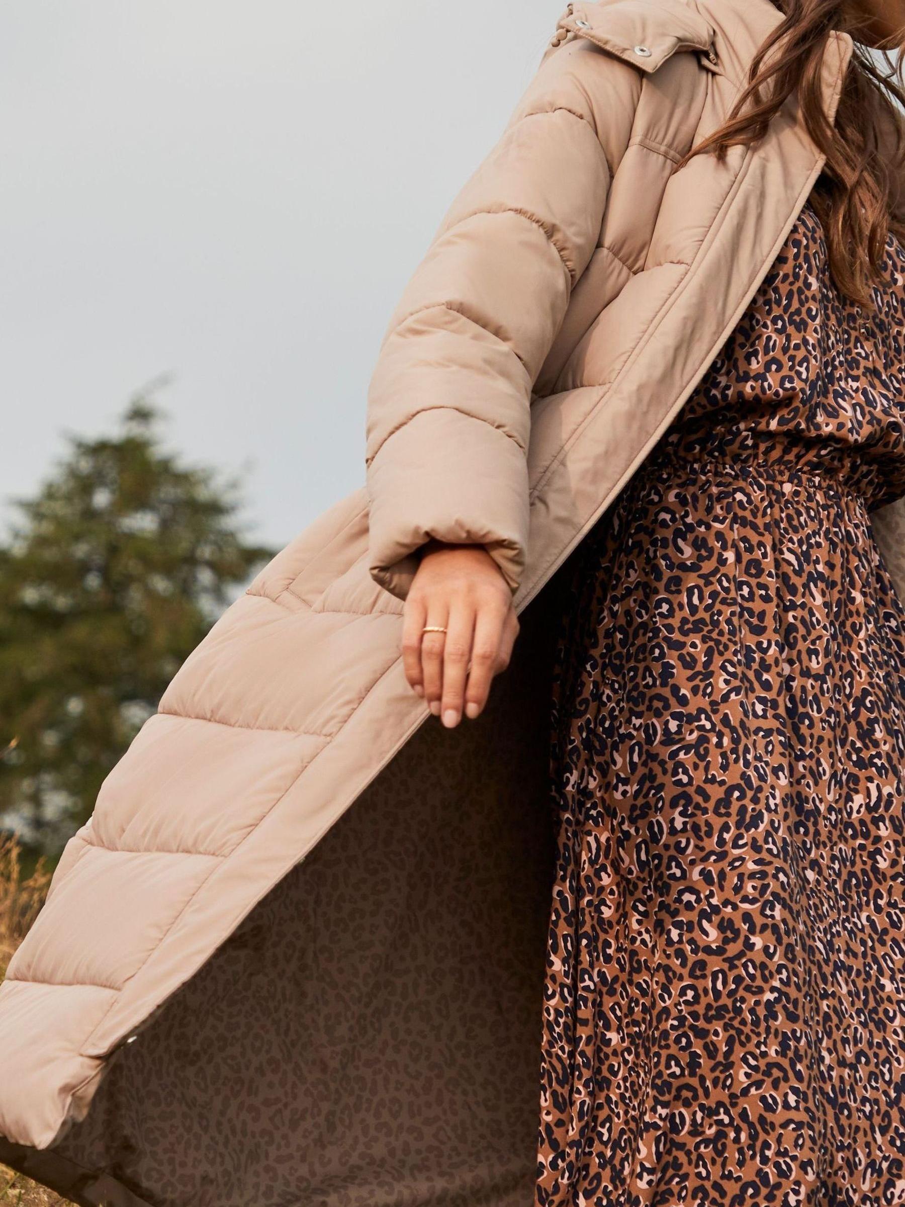 Chilly walks will be no bother for our Elberry padded coat. Its longline shape sits below the knee offering supreme coverage, while the padded baffles, filled with recycled polyester wadding, provides a hug of warmth. Caught out by dark clouds? No worries. It uses a showerproof fabric that is water repellent – perfect for light bursts of rain. The coat has a detachable hood that zips away with ease, a full zip and popper fastening, elasticated cuffs and side vents with poppers too. The inside of the coat and pockets are lined with fleece for extra cosiness and it s finished with a tonal Joules reflective screenprint to the back. MD12 Dec