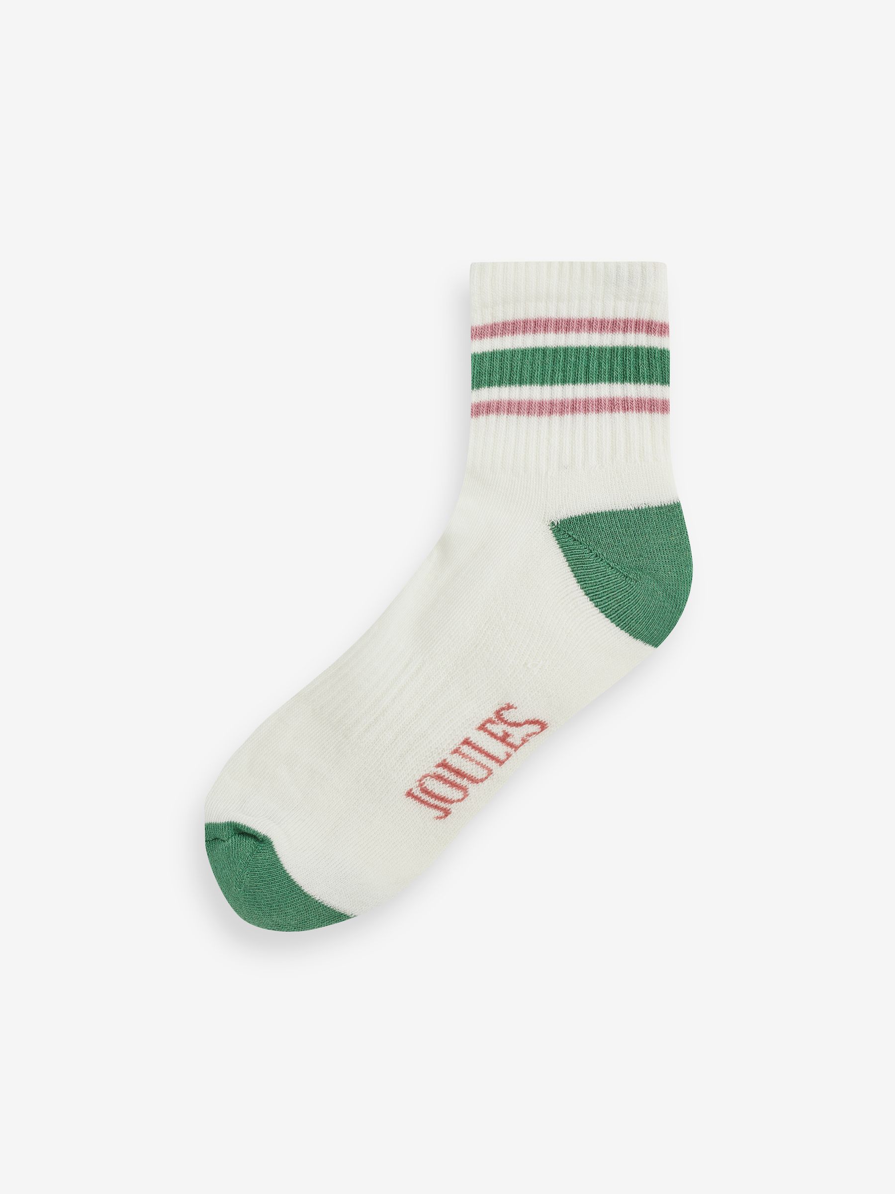 They're made from a breathable cotton blend and feature a ribbed band to the footbed for comfortable, all-day wear. Each pack comes with one white pair and one complementary coloured pair - both with Joules branding on the sole.