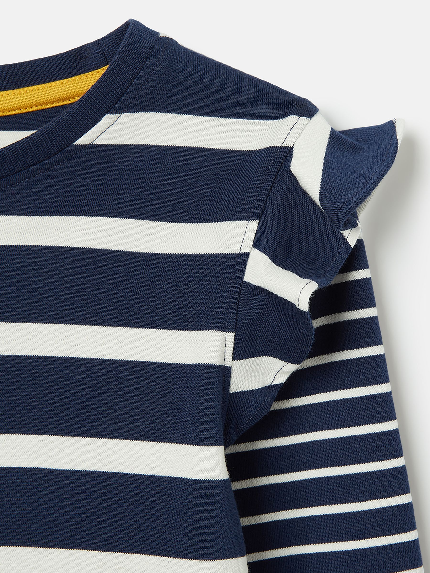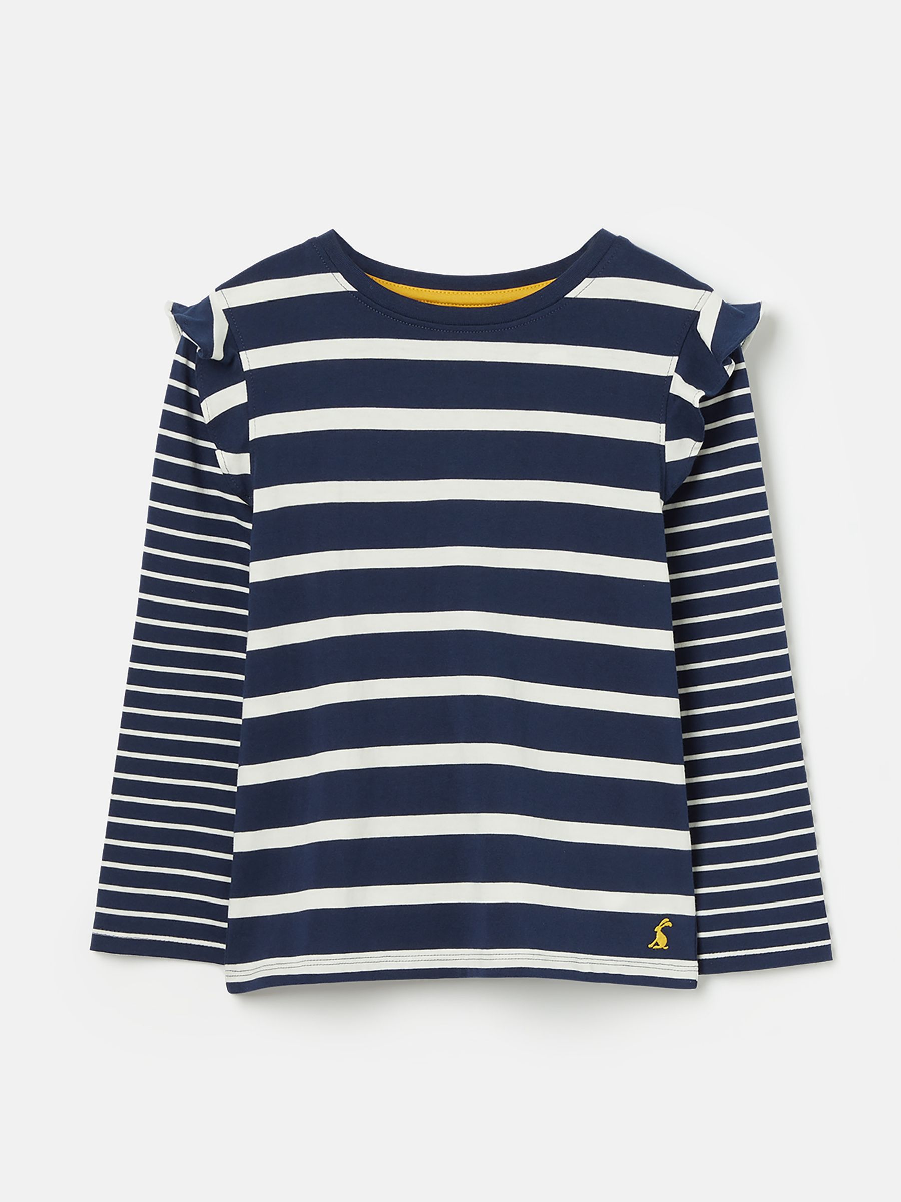Our Elora top has long sleeves with a delicate frill at each shoulder, and a crew neck and is made from quality fabric that can be passed on to others for years to come. The hotchpotch stripes add a lively touch and it's finished with Joules embroidery to the hem and outer back neck.