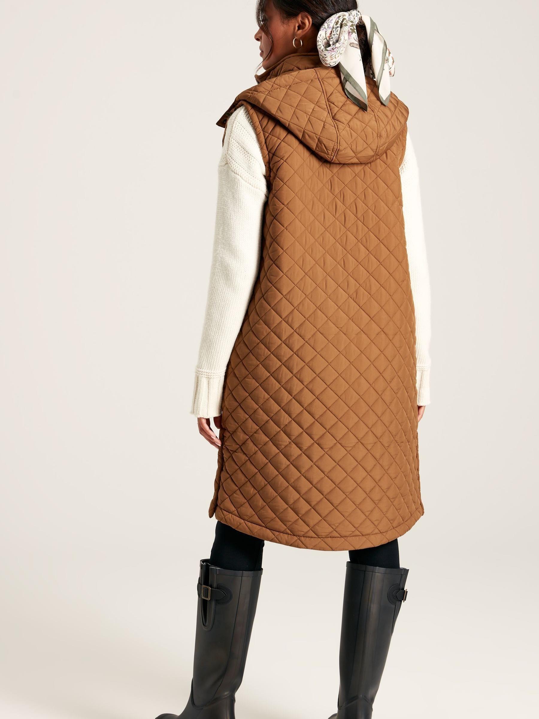 Chatsworth Rust Brown Showerproof Long Diamond Quilted Gilet With Hood