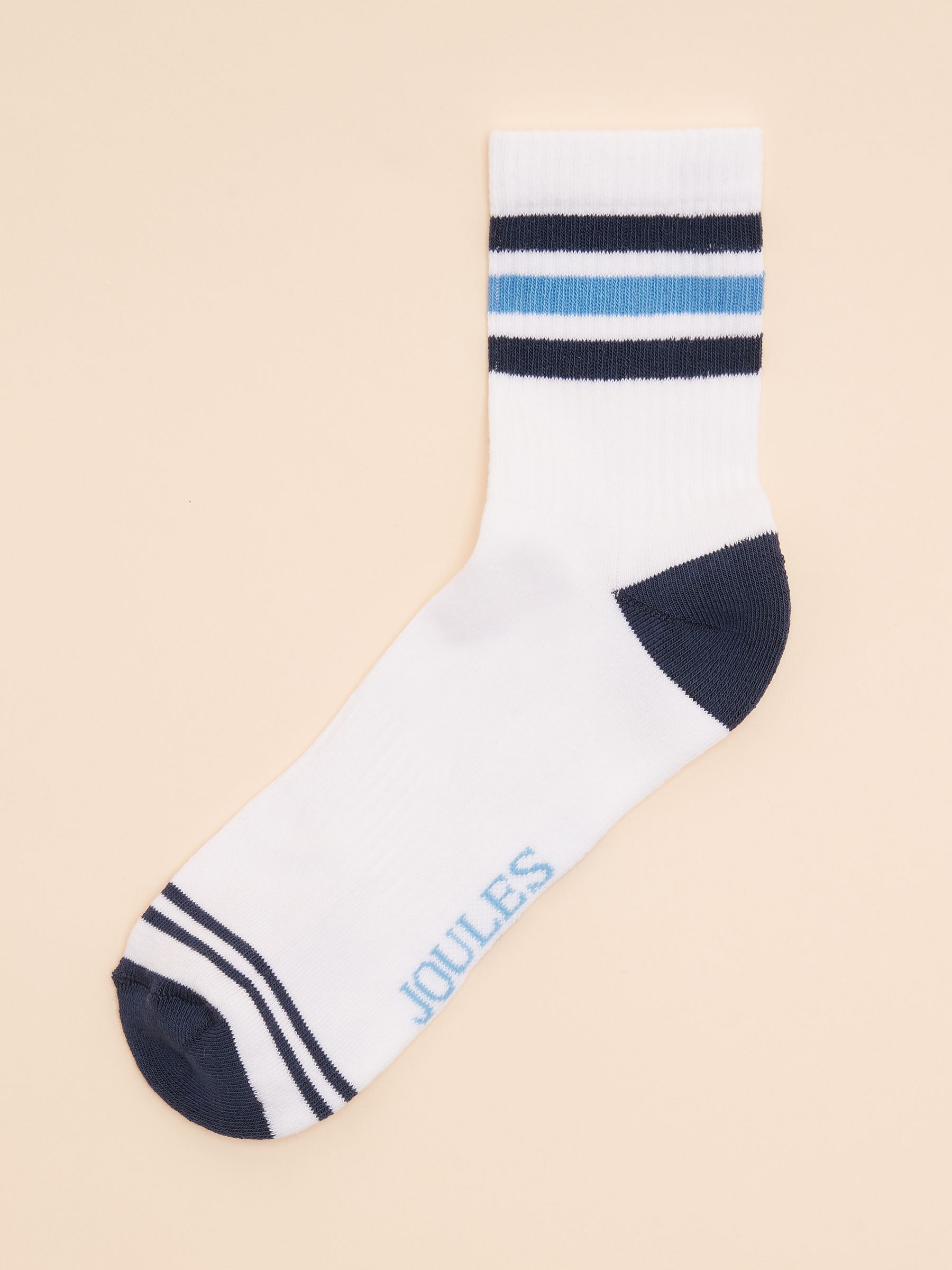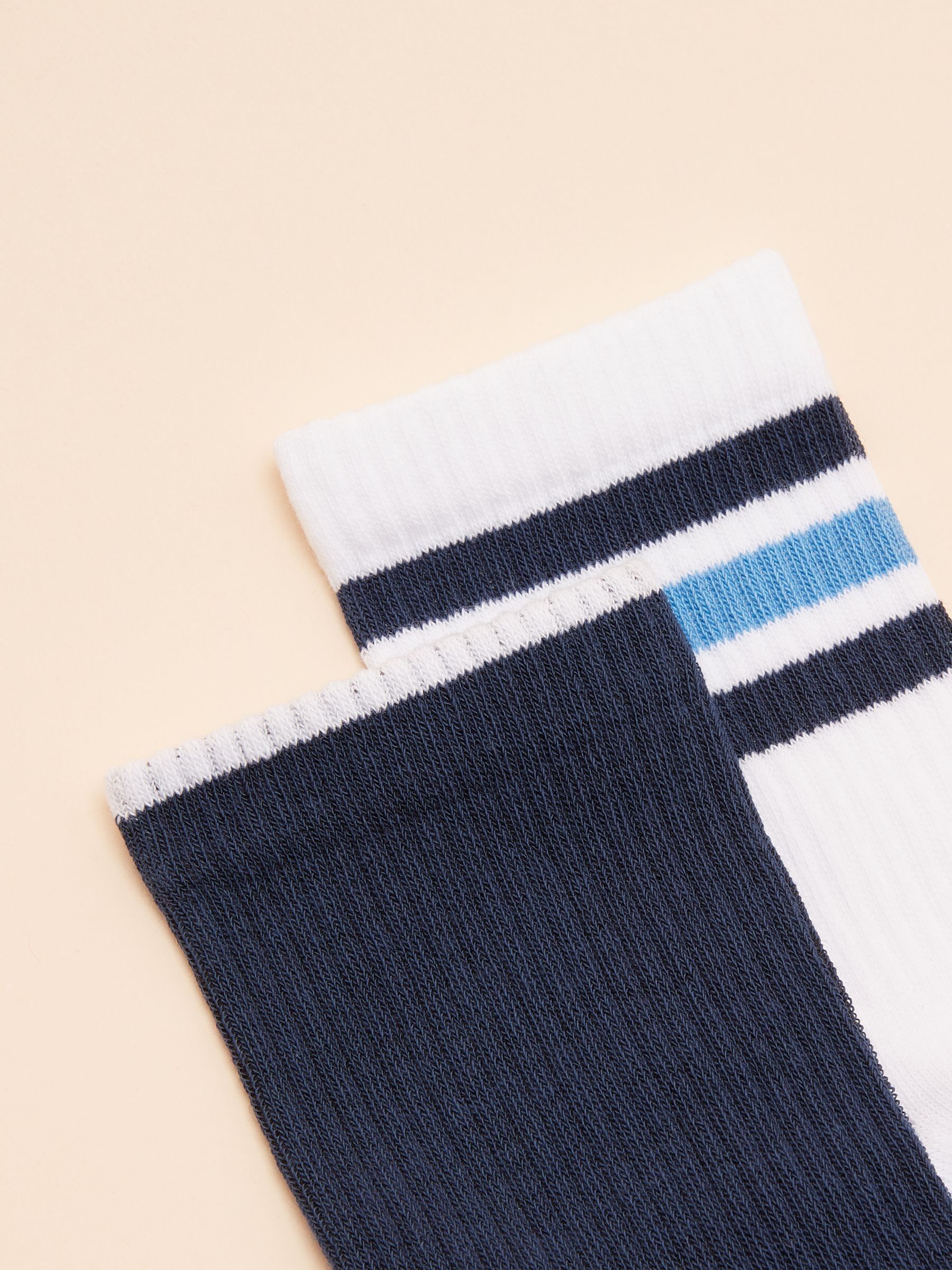 Advantage: You. We call these socks, tennis socks, but they're great no matter whether you're near a court or as far away from a racket as humanly possible. Crafted from cotton with a lot of stretch and complete with contrast stripes and rib detail for both style and texture. Pack of two. Ribbed cuffs. 100% cotton.