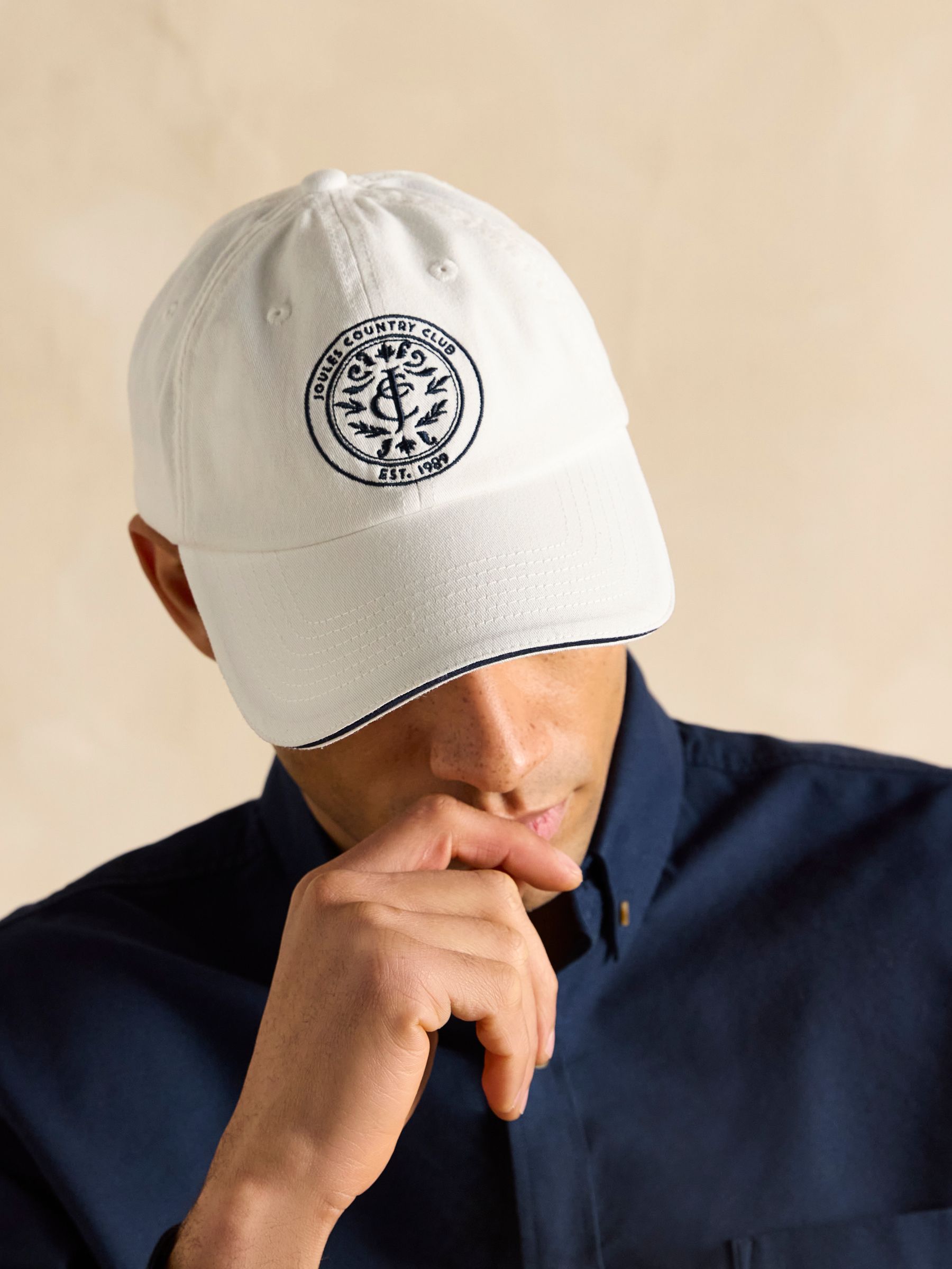 Nothing says time off attire quite like a baseball cap and the Daley is a laid-back style you'll wear everywhere. This everyday essential is crafted from 100% cotton, has breathable eyelets and features Joules branded embroidery to the centre front. A classic peak with topstitch detailing keeps the sun off your head, while the twill adjuster to the back and metal clasp allows for the perfect fit. Available for the whole family, there's matching Daley's for women and kids too. Cotton twill external adjuster. Metal clasp adjuster. Peak with top stitching. Breathable eyelets. Joules embroidery to the front