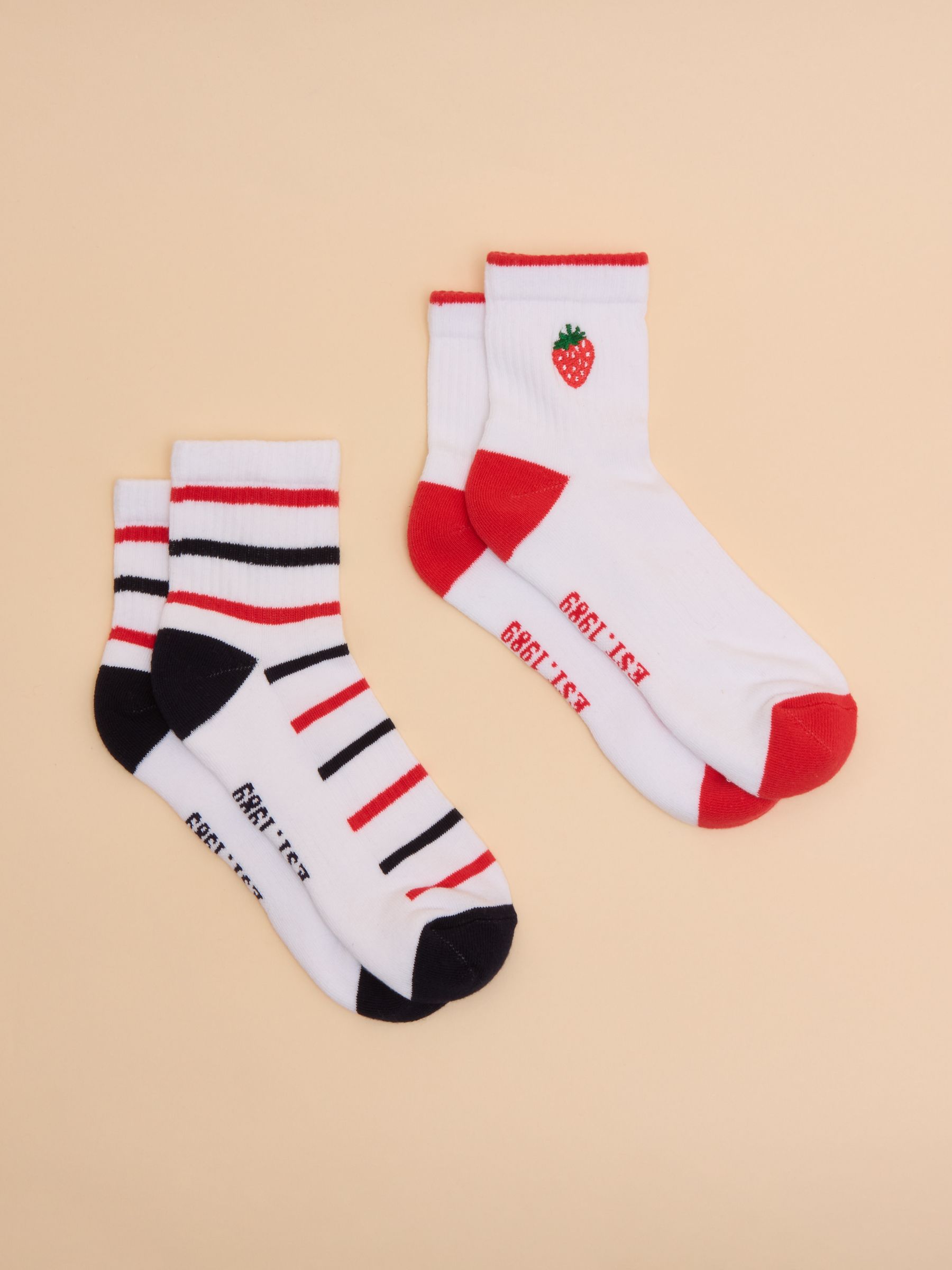 Women's Volley Cream & Red Strawberry Print Pack of Two Tennis Socks
