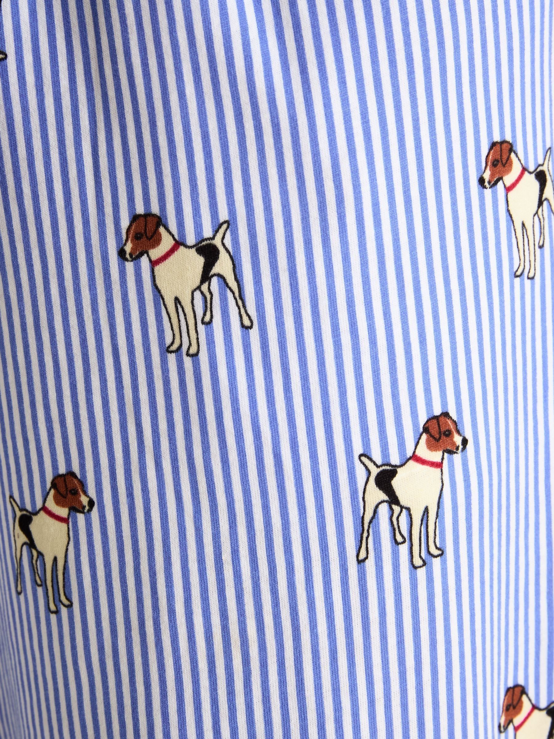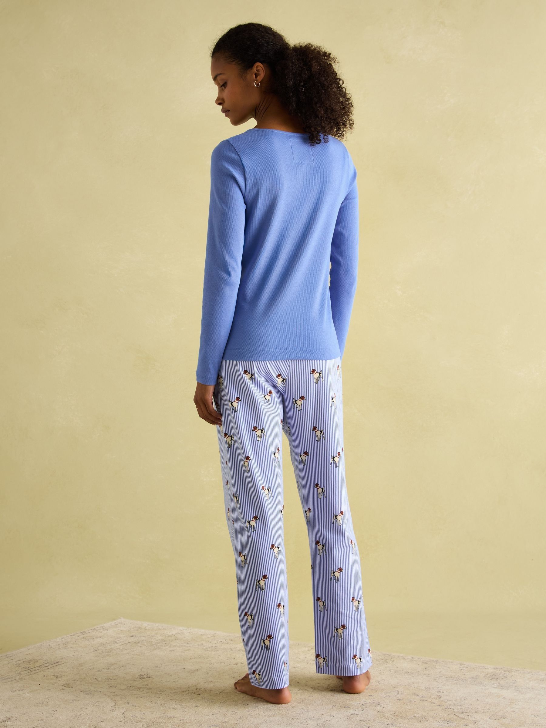 Head to bed in style with the Lyla pyjama set. This nightwear two-piece is crafted from a supremely soft cotton jersey and is the perfect thing to wear on cold, crisp nights. The set includes a plain long sleeve top with a scoop neck and button placket. Its complementing bottoms have a straight fit through the leg, an elasticated waistband with drawstring ties and slanted side pockets. They're finished with a unique hand-drawn print. Style the set with a pair of slippers and your favourite romance novel. Cotton jersey. Two-piece set. Plain long sleeve top. Scoop neck. Button placket. Straight leg bottoms. Elasticated waistband. Drawstring ties. Slanted side pockets.