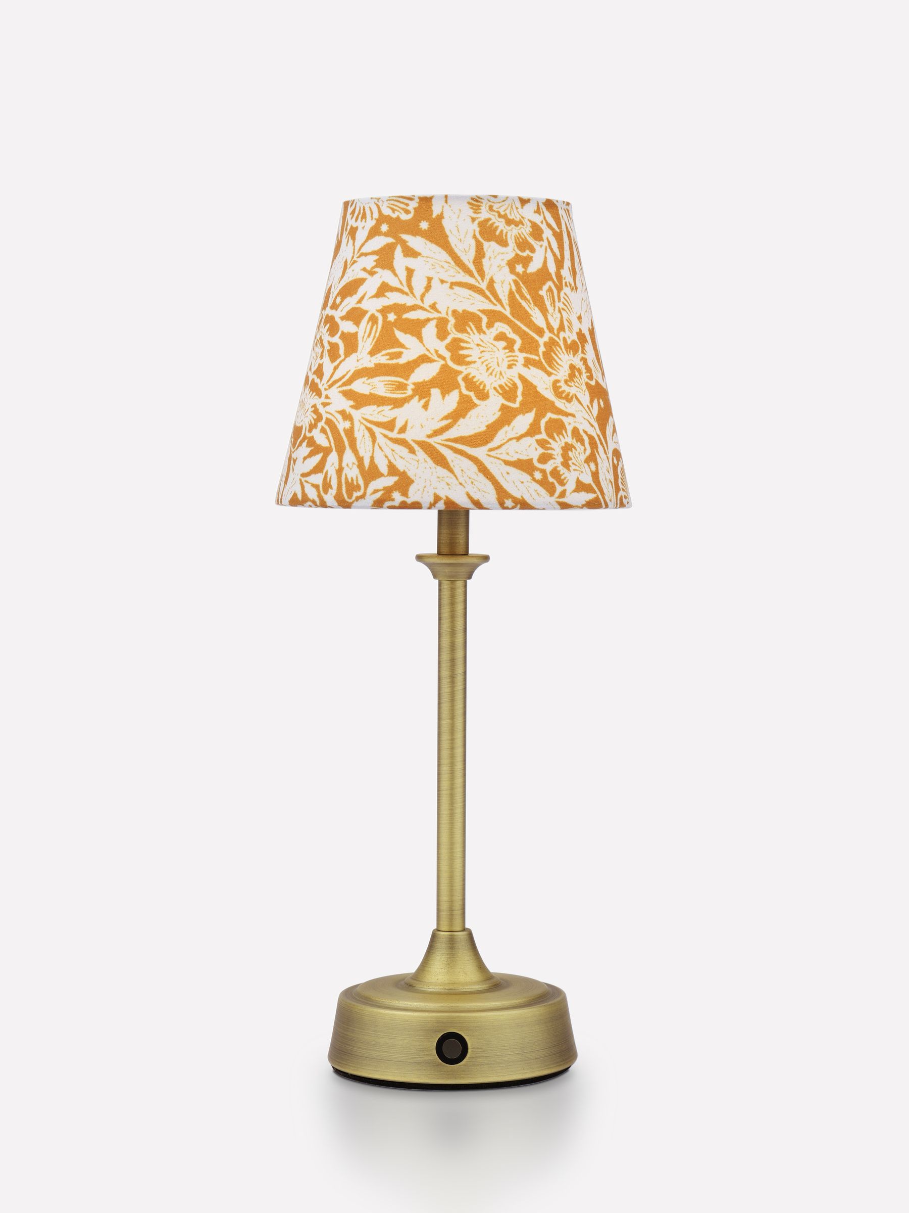 With a print that immediately draws attention, the Apsley lamp is a bold and beautiful interior choice. Its rechargeable LED design means it is wire-free offering you the opportunity to quite literally light up any space in the home, giving you full creative freedom. The stand and base are made from chic matte antique brass that suits all homes and have a classic tapered lamp shade adorned with a hand-drawn floral print. Picture it on your desk providing the light while you work on that novel you always said you’d write. Re-chargeable with a plug-in adaptor Matte antique brass Printed tapered lampshade Dimension: 120mm x H.245mm Click here for information on how to recycle your old electrical item. For Ireland: If this product contains an LED light bulb or luminaire, included in this price is a contribution to recycling costs of €0.05
