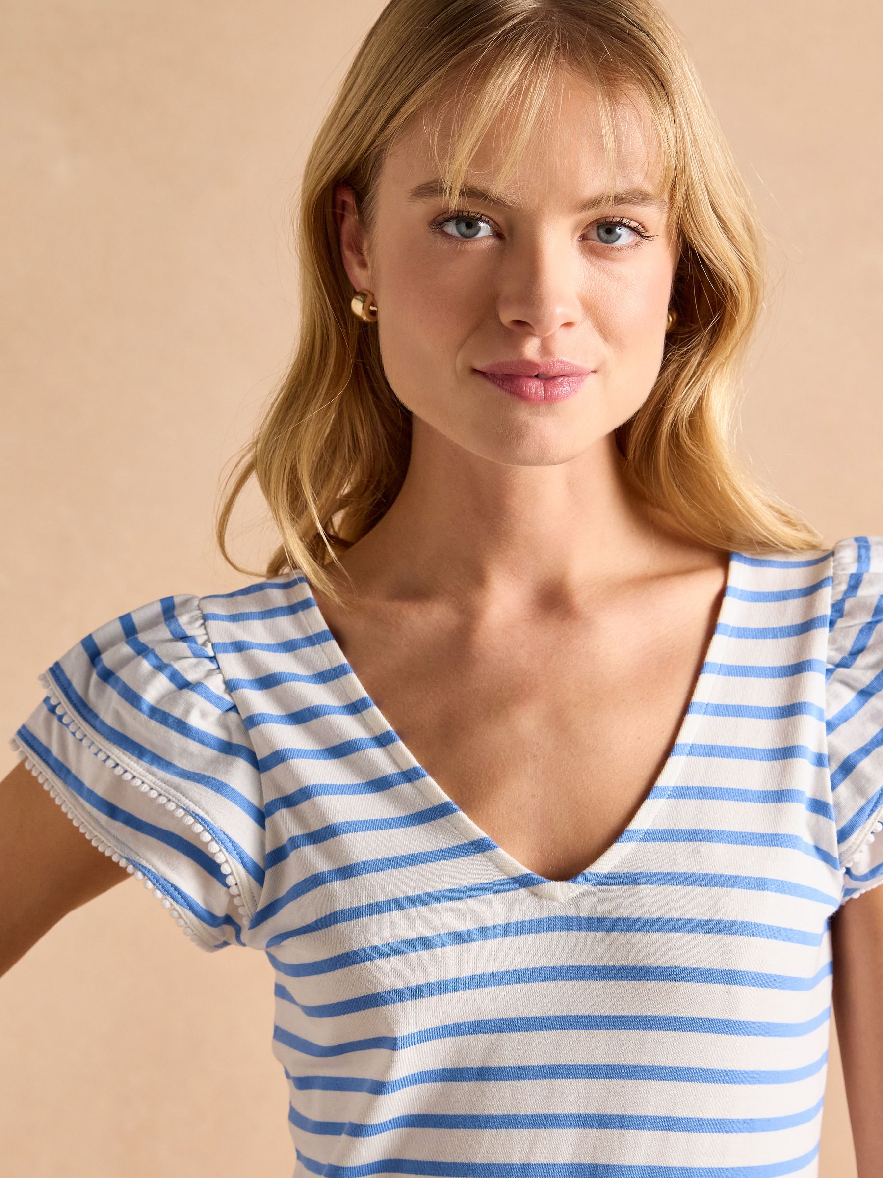 Emma Blue Striped V-Neck Frill Jersey Vest