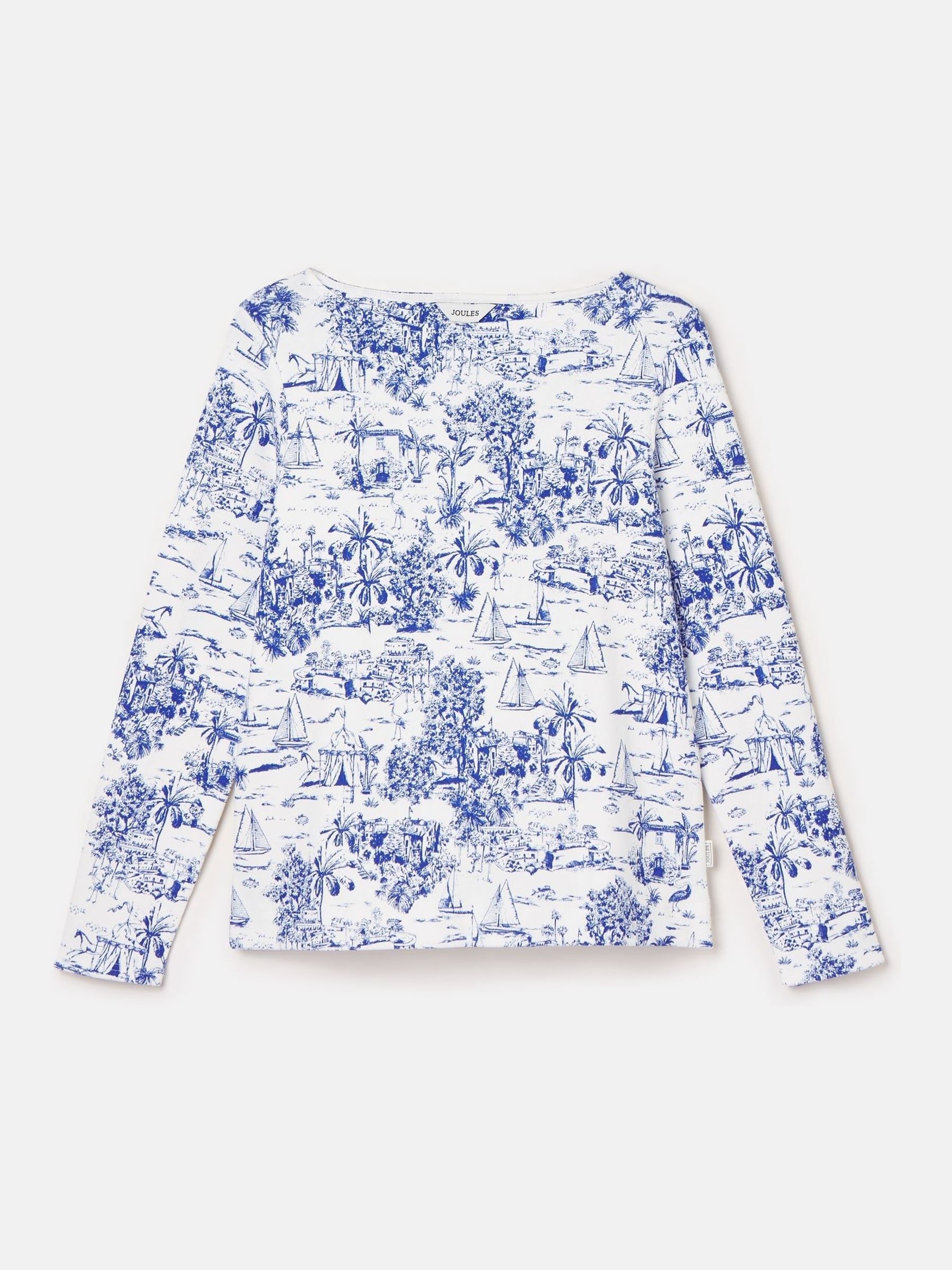 Harbour Blue Toile de Jouy Boat Neck Printed Top