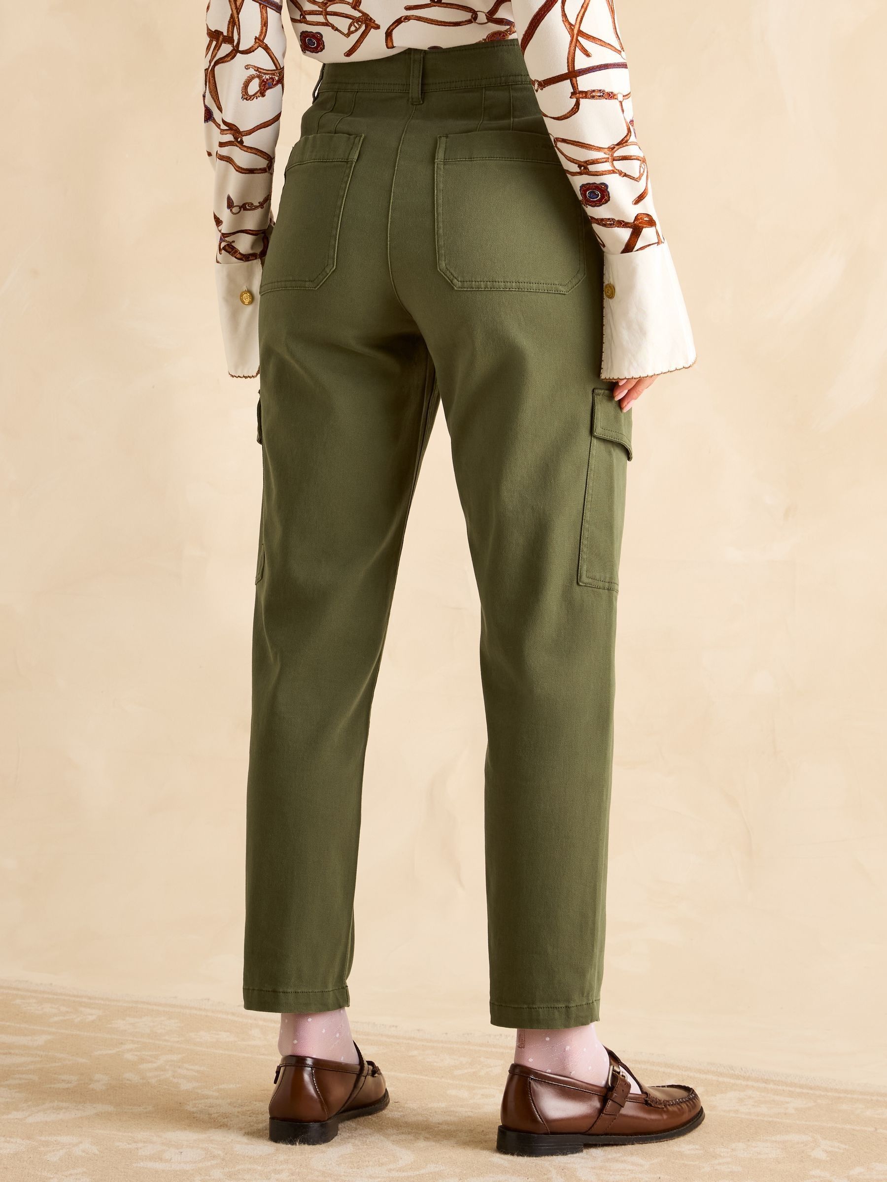 A stylish alternative to jeans, these cargo trousers will quickly become the pair you live in most. For a flattering fit, they have a tapered leg and a mid-rise waist. Classic cargo features include utility-style pockets to the waist, thighs and rear, as well as seam detailing to each leg. Belt loops allow you to cinch the waist with your favourite belt, and a zip and button fastening is a practical touch. A great transitional piece, they can be styled from season to season. Tapered fit through the leg Mid-rise waist Zip and button fastening Slanted utility pockets to each side Flap pockets to each thigh Additional back pockets Belt loops Seam detailing to each leg