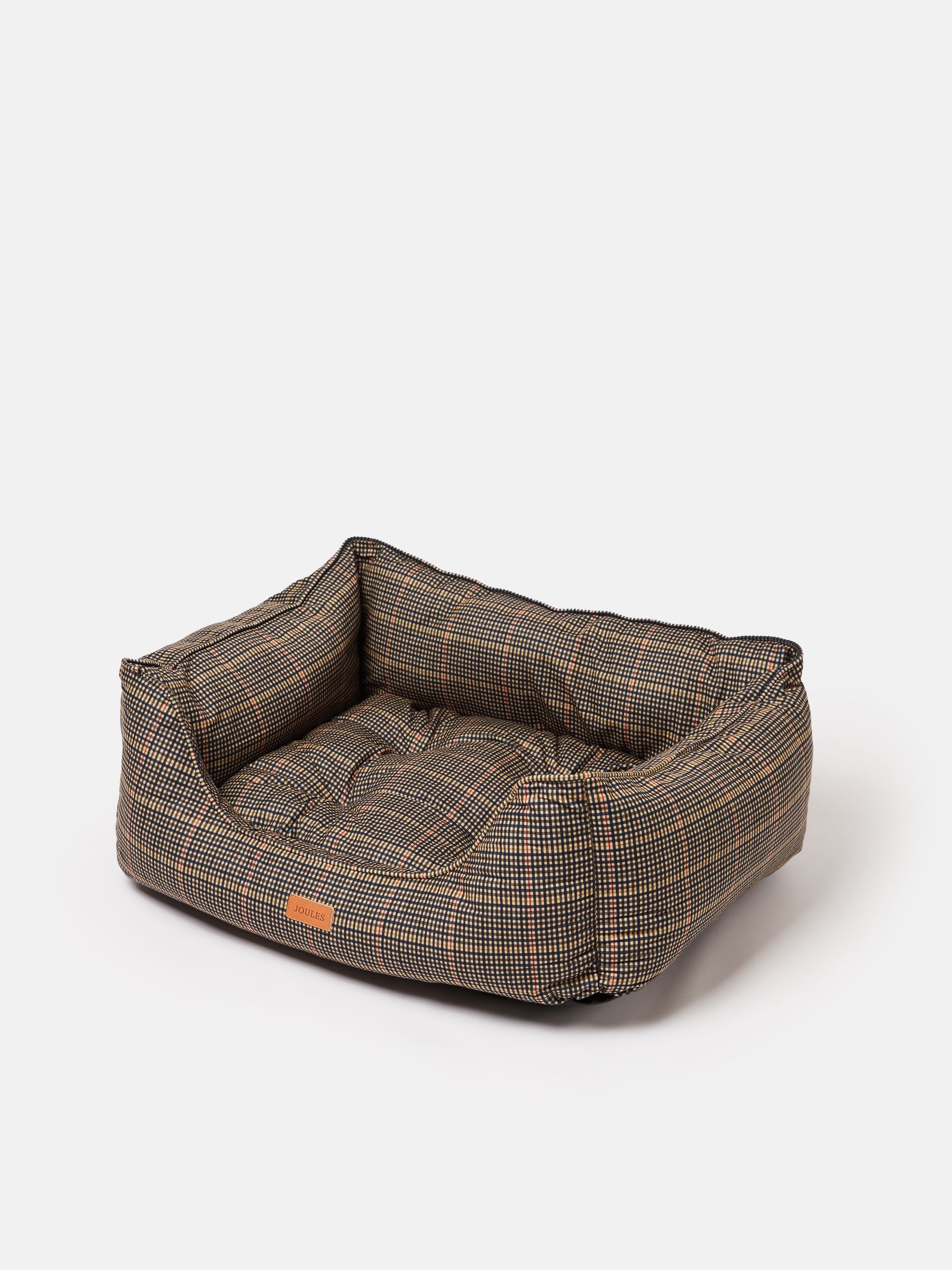 Let sleeping dogs lie in this heritage-inspired printed dog bed. This box bed is designed with your dog's comfort in mind. Featuring thickly padded sides on all sides, this bed will provide warmth and comfort to all four legged friends. Furthermore this bed has a reversible inner cushion, one side is the same hardwearing canvas as the rest of the bed, whilst the other side is a cosy soft khaki plush. With a non-slip base to prevent the bed from slidding whilst your pet wiggles, your furry friend is sure to get a great nights (or morning, or even afternoon) sleep. Not only stylish, but practical this bed is machine washable on a gentle 30 degree cycle. Exclusive Joules in-house designed print Non-slip base Machine washable Reverse cushion Three sizes available Small W55 x D42 x 20cm Medium W69 x D52 x 25cm Large W80 x D62 x 27cm
